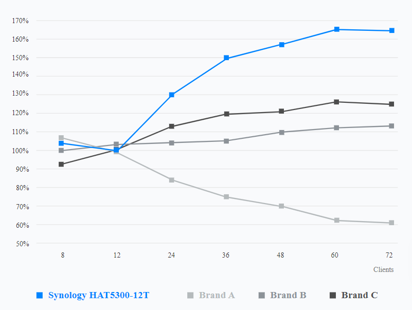 Dzięki testowaniu i optymalizacji dyski twarde z serii HAT5300 zostały zoptymalizowane pod kątem zapewnienia do 23% wyższej stałej wydajności odczytu sekwencyjnego w wymagających środowiskach obsługujących wielu użytkowników.