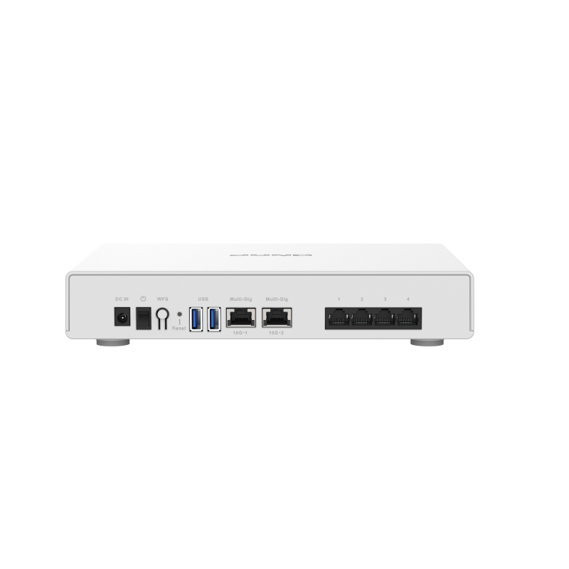 Urządzenie QHora-301W oferuje czterordzeniowy procesor klasy korporacyjnej Qualcomm 2,2 GHz z pamięcią RAM o pojemności 1 GB, zapewniając obsługę Wi-Fi 6 (802.11ax) i do 3600 Mb/s dwupasmowego transferu (2,4 GHz i 5 GHz). Dzięki dwóm portom 10GbE i czterem portom Gigabit model QHora-301W umożliwia elastyczne wdrażanie sieci LAN/WAN i optymalizację wydajności sieci przewodowej.