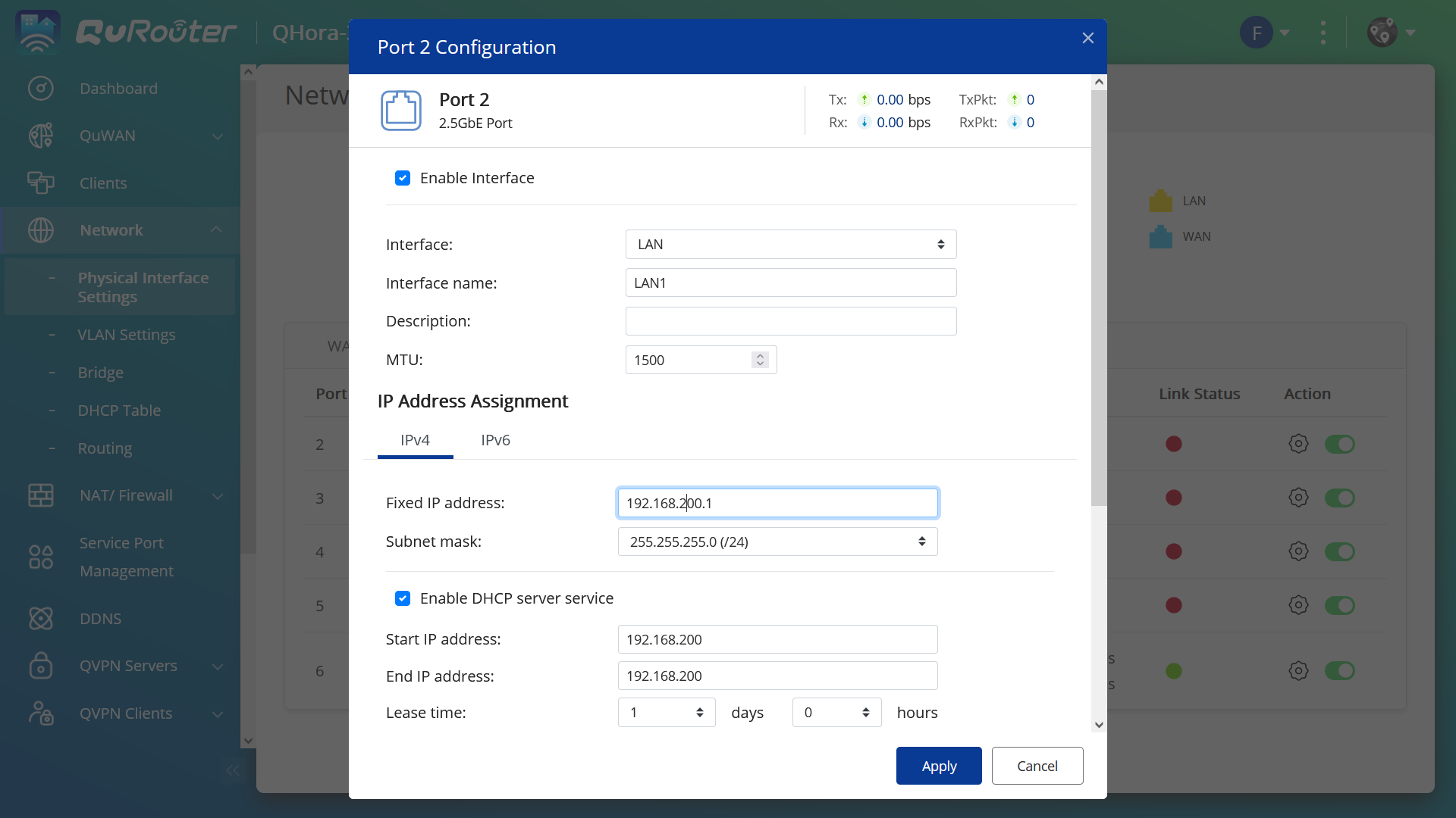 Uwaga: W trybie domyślnym pierwszy port od lewej to port WAN, a każdy port sieciowy jest niezależny. Aby ustawić porty w tym samym segmencie sieci, należy skonfigurować je za pomocą systemu operacyjnego QuRouter.