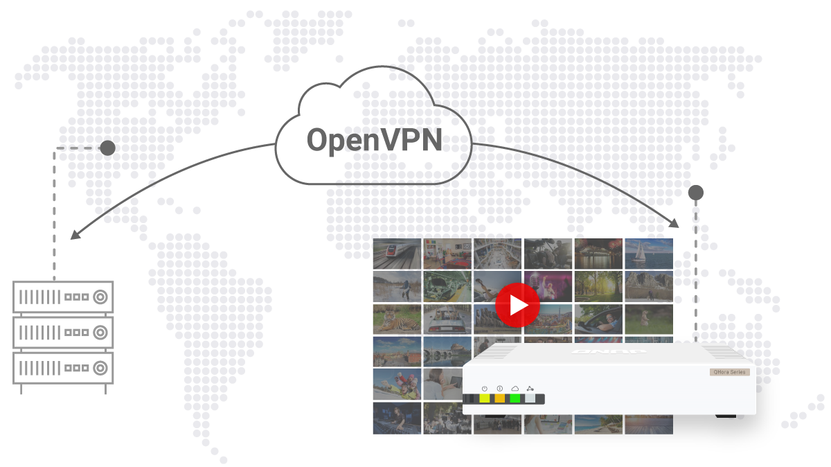 Model QHora-321 integruje funkcje serwera i klienta VPN Usługi QVPN — umożliwiając utworzenie klienta VPN, który nawiązuje połączenie z serwerem zdalnym lub dostawcą zewnętrznym w celu uzyskania dostępu do zawartości lub usług. Pozwala również na używanie modelu QHora-321 jako serwera VPN w celu połączenia z urządzeniami końcowymi z użyciem protokołów OpenVPN, L2TP/IPSec oraz stworzonych przez firmę QNAP protokołów QBelt VPN.*