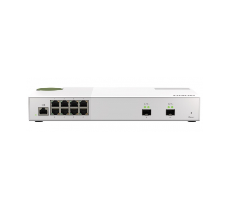 Model QSW-M2108-2S to zarządzany przełącznik Warstwy 2, wyposażony w dwa porty 10GbE SFP+ i osiem portów 2,5 Gigabit. Model QSW-M2108-2S, obsługujący przełączanie w warstwie 2 i zarządzanie siecią za pomocą przyjaznego w obsłudze interfejsu WWW, oferuje łatwe wdrażanie w hybrydowych środowiskach sieciowych wysokiej szybkości i stanowi podstawowe rozwiązanie do zarządzania siecią, które może być używane nawet przez specjalistów spoza branży IT. Dzięki wysokiej wydajności, przyjaznym w obsłudze funkcjom zarządzania oraz małej wielkości, model QSW-M2108-2S umożliwia ekonomiczną modernizację sieci, zapewniającej łączność do 2,5GbE lub 10GbE, przy jednoczesnej optymalizacji przepustowości i zapewnieniu bezpieczeństwa konserwacji sieci.