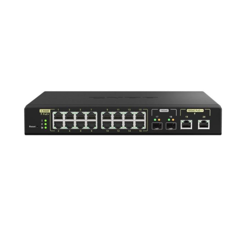 Urządzenie QSW-M2116P-2T2S firmy QNAP to zarządzany przełącznik L2 PoE z szesnastoma portami 2,5GbE PoE+ 30 W, dwoma portami 10GbE PoE++ 90 W. Urządzenie QSW-M2116P-2T2S oferuje całkowitą moc 280 W oraz dwa porty 10GbE SFP+, dzięki czemu nie tylko umożliwia stworzenie szybkiej i wydajnej infrastruktury sieciowej PoE dla punktów dostępowych i routerów Wi-Fi 6, ale także zapewnia możliwość łączenia sieci szkieletowej. System przełączników QSS firmy QNAP z przyjaznym w obsłudze interfejsem sieci Web, pomaga administratorom IT efektywnie kontrolować sieci Layer 2 i PoE, w tym bezprzewodowe punkty dostępu, kamery IP i cyfrowy podpis, przełączniki rdzeniowe i serwery. Urządzenie QSW-M2116P-2T2S zapewnia małym i średnim przedsiębiorstwom zoptymalizowane kosztowo i centralnie zarządzane rozwiązanie do wdrażania sieci LAN.