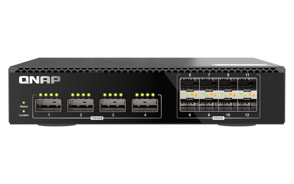 Model QSW-M7308R-4X to zarządzany przełącznik 100GbE L2 z czterema portami 100GbE QSFP28 i ośmioma portami 25GbE SFP28. Model QSW-M7308R-4X można połączyć w celu przesyłania danych z serwerami do 100G/25G i NAS w pomieszczeniach serwerowych lub z przełącznikami 100G/25G, umożliwiając przyspieszenie działania wysokiej szybkości pamięci masowej, edycji wideo, wirtualizacji i aplikacji SI. Dzięki konkurencyjnym cenom i funkcjom oszczędzającym miejsce, QSW-M7308R-4X umożliwia firmom szybką aktualizację do ultraszybkiej infrastruktury sieci szkieletowej w celu budowy ultraszybkiej transmisji sieciowej i rozwiązań pamięci masowej. To produkowane na Tajwanie (MIT) urządzenie QSW-M7308R-4X stanowi wysokiej jakości i niezawodne rozwiązanie sieciowe.