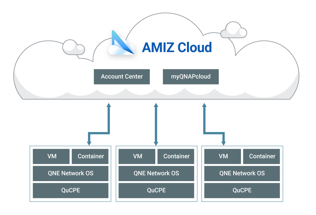 Wdrażając środowiska wirtualne, przedsiębiorstwa często decydują się na instalowanie kosztownych rozwiązań klasy korporacyjnej na serwerach brzegowych lub bezpłatnych rozwiązań z ograniczonym wsparciem technicznym – jest to trudna decyzja dla małych i średnich przedsiębiorstw o ograniczonych zasobach. Ponadto jednoczesne uruchamianie wielu maszyn wirtualnych może pogorszyć wydajność sieci. Fizyczne rozwiązanie do wirtualizacji sieci QuCPE firmy QNAP zawiera technologie akceleracji sprzętowej, oryginalny system QNE Network firmy QNAP oraz platformę do scentralizowanego zarządzania Chmurą AMIZ, które umożliwiają małym i średnim przedsiębiorstwom tworzenie wysoce zoptymalizowanej infrastruktury sieci wirtualnej.