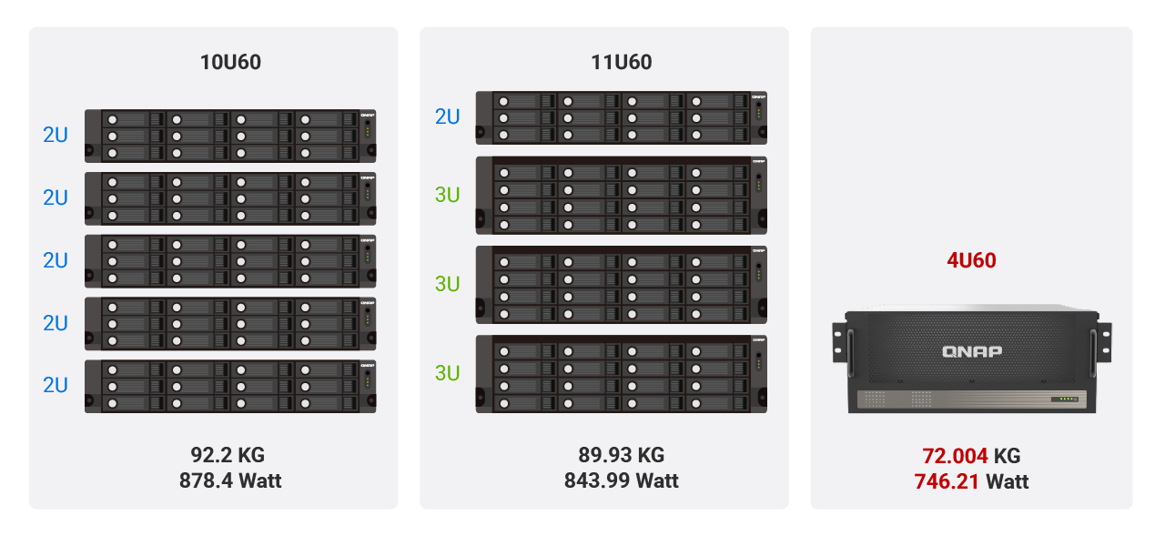 4U przestrzeni na sześćdziesiąt twarde dyski