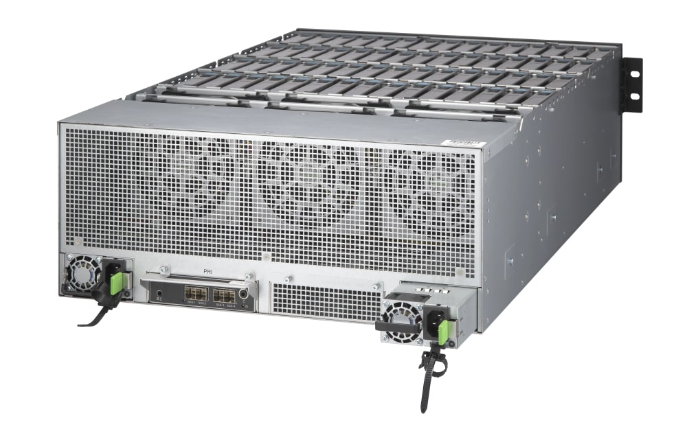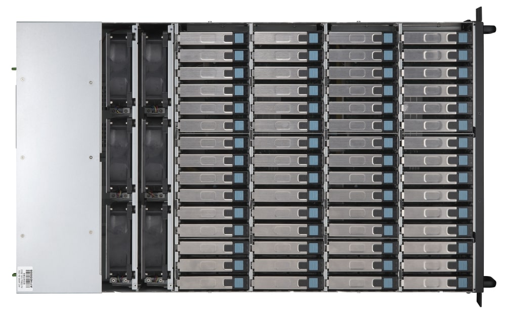 Do kompaktowej obudowy 4U można zainstalować do 60 dysków SAS/SATA twarde dyski, uzyskując efektywną pojemność ponad 1 PB.