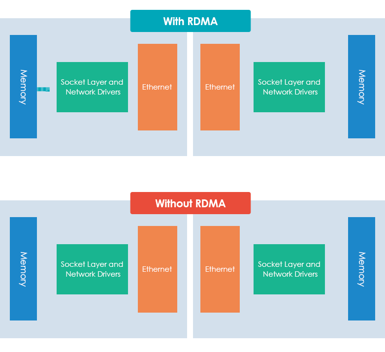 Model TS-h1886XU-RP R2 jest dostarczany z fabrycznie zainstalowaną dwuportową kartą sieciową 10GbE SFP+ SmartNIC (która wykorzystuje karty NVIDIA® Mellanox ConnectX®-4 Lx lub tego samego poziomu kartę SmartNIC), aby ulepszyć centra danych i aplikacje wirtualizacyjne wymagające dużej przepustowości oraz obsługiwać RDMA przez konwergentną sieć Ethernet (RoCE i RoCEv2), co pozwala na ominięcie ogólnych sterowników sieciowych, warstwy gniazda i bezpośrednie przechodzenie do serwera ESXi i bufora pamięci. Technologia RoCE może zwiększyć wydajność NAS, jednocześnie obniżając wykorzystanie procesora przez aplikacje korzystające z sieci Ethernet, stanowiąc idealne rozwiązanie do wysokiej szybkości transferów dużych ilości danych o niewielkich opóźnieniach.