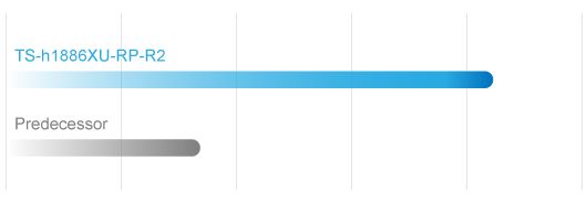 W porównaniu z poprzednim modelem prędkość przesyłania danych oferowana przez model TS-h1886XU-RP R2 jest o 250% wyższa, dzięki czemu zapewnia on realizację wielu kluczowych zadań biznesowych.