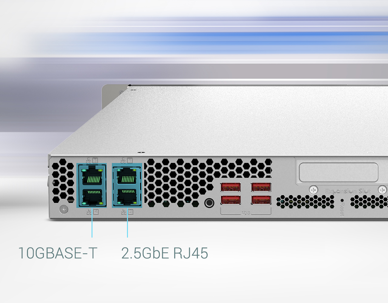 Dwa porty 10GBASE-T i dwa porty 2,5GbE przyspieszają wirtualizację, intensywny dostęp do plików i zadania w zakresie tworzenia kopii zapasowych/przywracania danych.