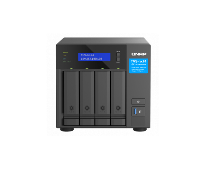 Model TVS-h474 SMB NAS, wyposażony w dwurdzeniowy procesor Intel® Pentium® Gold i system operacyjny QuTS hero, oparty na systemie plików ZFS, zapewnia integralność danych i obsługę liniową, deduplikację danych na poziomie bloków i kompresję, migawki o niemal nieograniczonych możliwościach i SnapSync w czasie rzeczywistym oraz optymalizację SSD. Niezależnie od tego, czy chodzi o serwery plików o znaczeniu krytycznym, serwery wirtualizacji, wykonywaną zespołowo edycję wideo, czy też o zastosowania w zakresie wydajnego tworzenia kopii zapasowych i przywracania danych, TVS-h474 zapewnia idealne rozwiązanie NAS. Wysokowydajny model TVS-h474 zapewnia możliwości rozbudowy PCIe Gen 4 (nawet dwukrotnie większa prędkość transmisji niż w przypadku Gen 3), buforowanie M.2 NVMe SSD oraz łączność 2,5GbE dla szybkich środowisk sieci wirtualizacji.