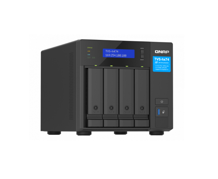 Model TVS-h474 jest wyposażony w dwa gniazda M.2 PCIe, które umożliwiają buforowanie dysków SSD lub puli pamięci masowej SSD, zapewniając większą wydajność, lub inne aplikacje.