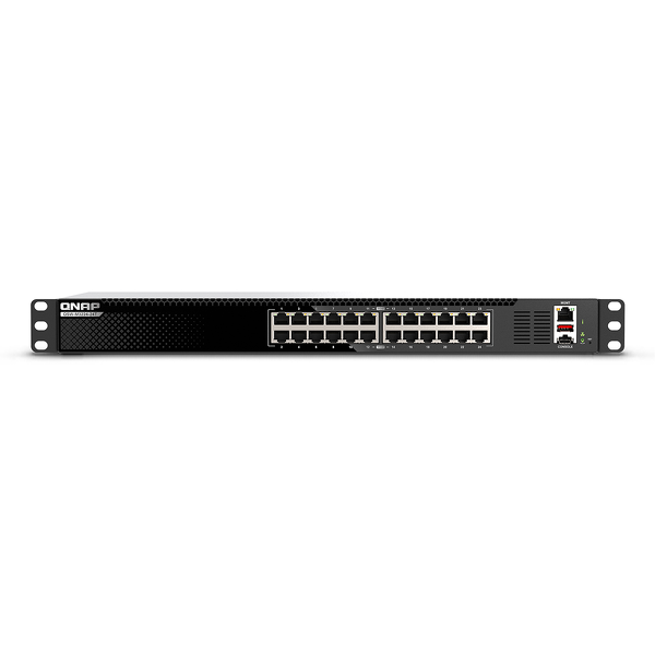 Dzięki kompaktowej, metalowej obudowie model QSW-M3224-24T zapewnia stabilne, niezawodne, a jednocześnie niemal ciche działanie, nawet w przypadku pełnego obciążenia dysku. Wyświetlanie bieżącego stanu systemu ułatwiają trzy diody LED na przednim panelu.