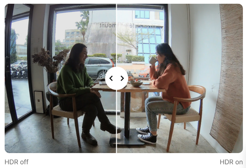 Technologia HDR (High Dynamic Range) zapewnia wyraźny, szczegółowy obraz zarówno w zacienionych, jak i jasnych obszarach, pomimo warunków wysokiego kontrastu oświetlenia.