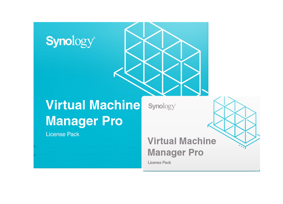 Licencje programu Virtual Machine Manager Pro są dostępne w postaci pakietów 3- i 7-węzłowych i zachowują ważność przez trzy lub pięć lat. Każdy klaster VMM może składać się maksymalnie z siedmiu urządzeń Synology NAS. Po aktywowaniu licencji nie można jej zwrócić.