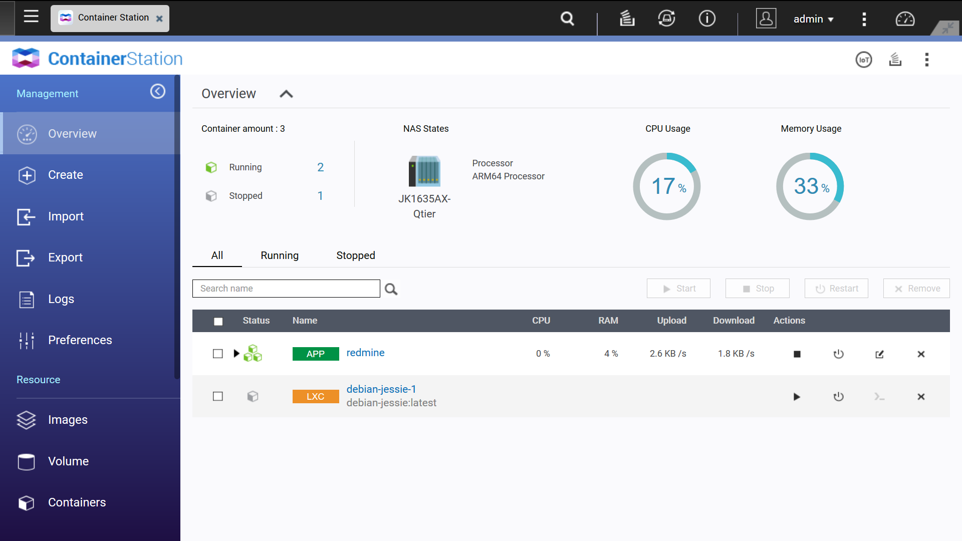 TS-1635AX obsługuje kontenery (LXC i Docker®) oraz wirtualne maszyny z interfejsem wiersza poleceń Linux (CLI), umożliwiając wdrażanie różnorodnych aplikacji wirtualizacyjnych.